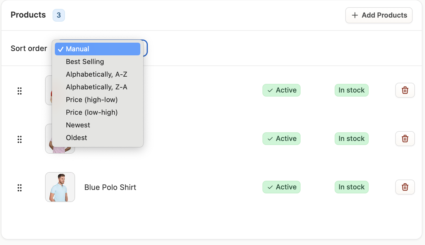 For merchandising purposes, you may want to change the order in which products in a taxon are presented in the storefront. To do so, you can select the sort order from the dropdown menu in the Products section of the taxon editor.